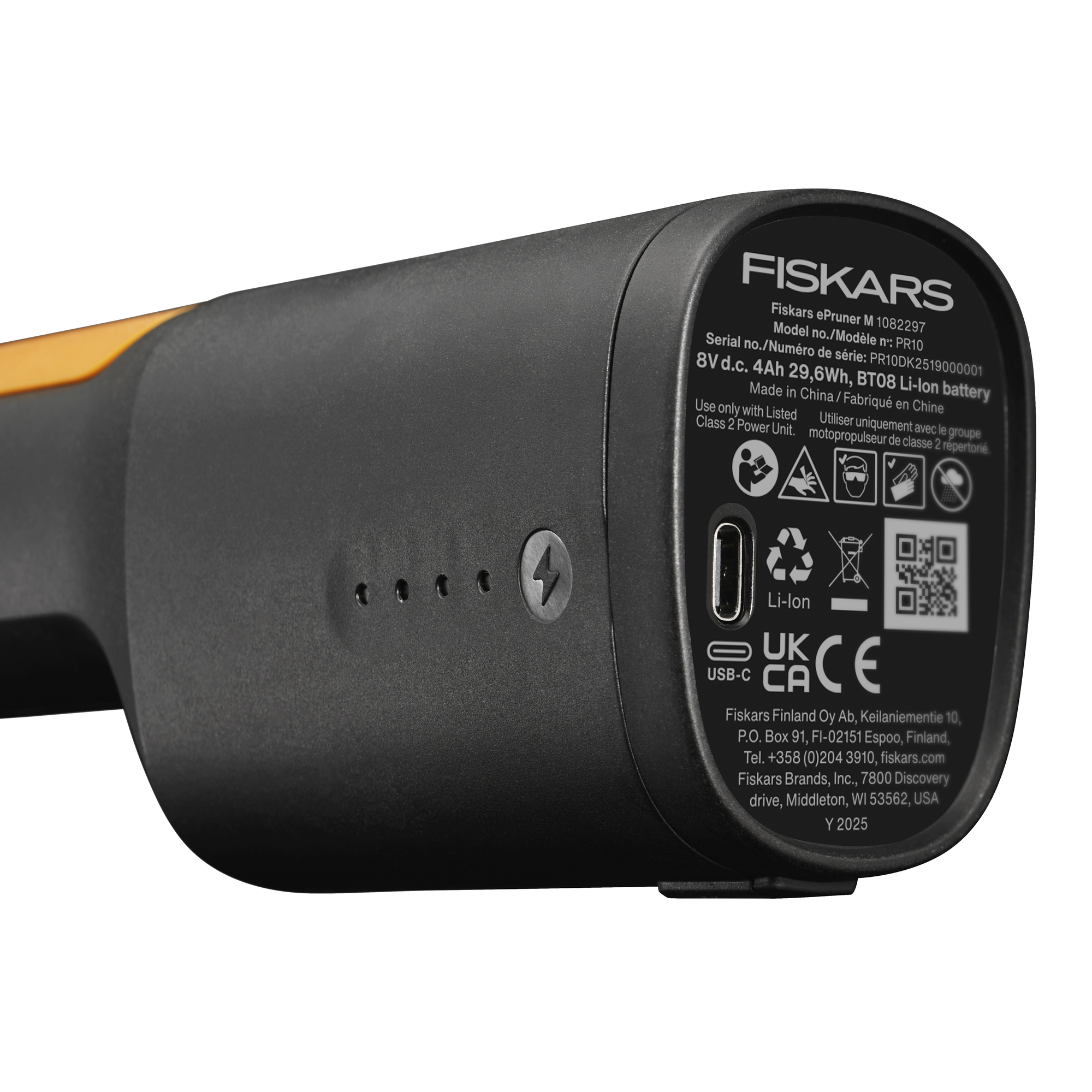 Fiskars akuksakäärid paistavad silma ka oma turvalisuse ja kasutajasõbralikkuse poolest. Seade laeb mugavalt USB-C kaudu, mis teeb selle kasutamise eriti lihtsaks ja praktiliseks.
