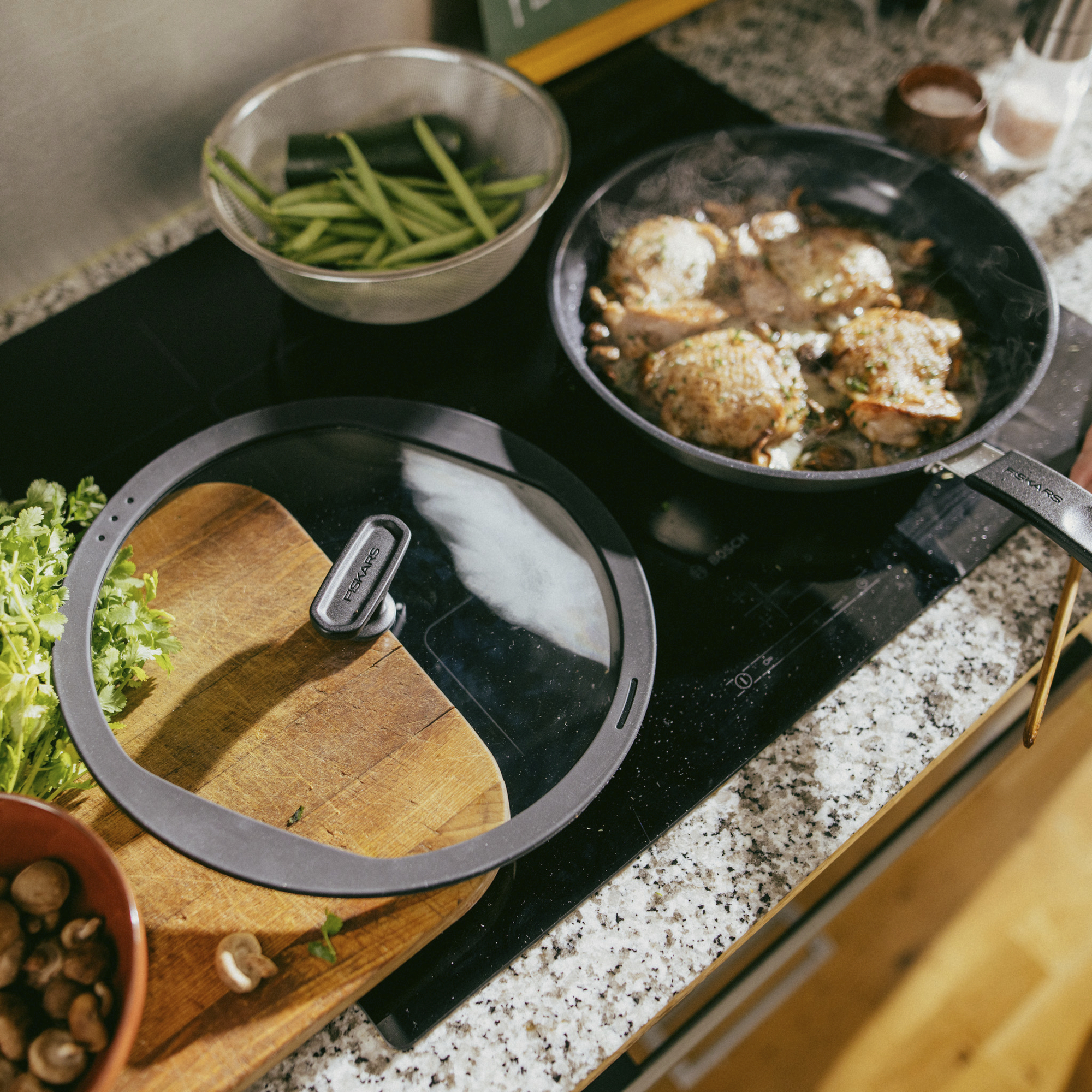 Kas otsid kvaliteetset klaaskaant oma praepannile? Fiskars kuulab tarbijate soove ja tõi turule 28 cm klaaskaane, mis sobib 28 cm praepannile, 26 cm hautamispannile ja wokpannile. Vastupidav klaas ja silikoonääred – sama kvaliteet, mida tuntakse Hard Face toodetest.