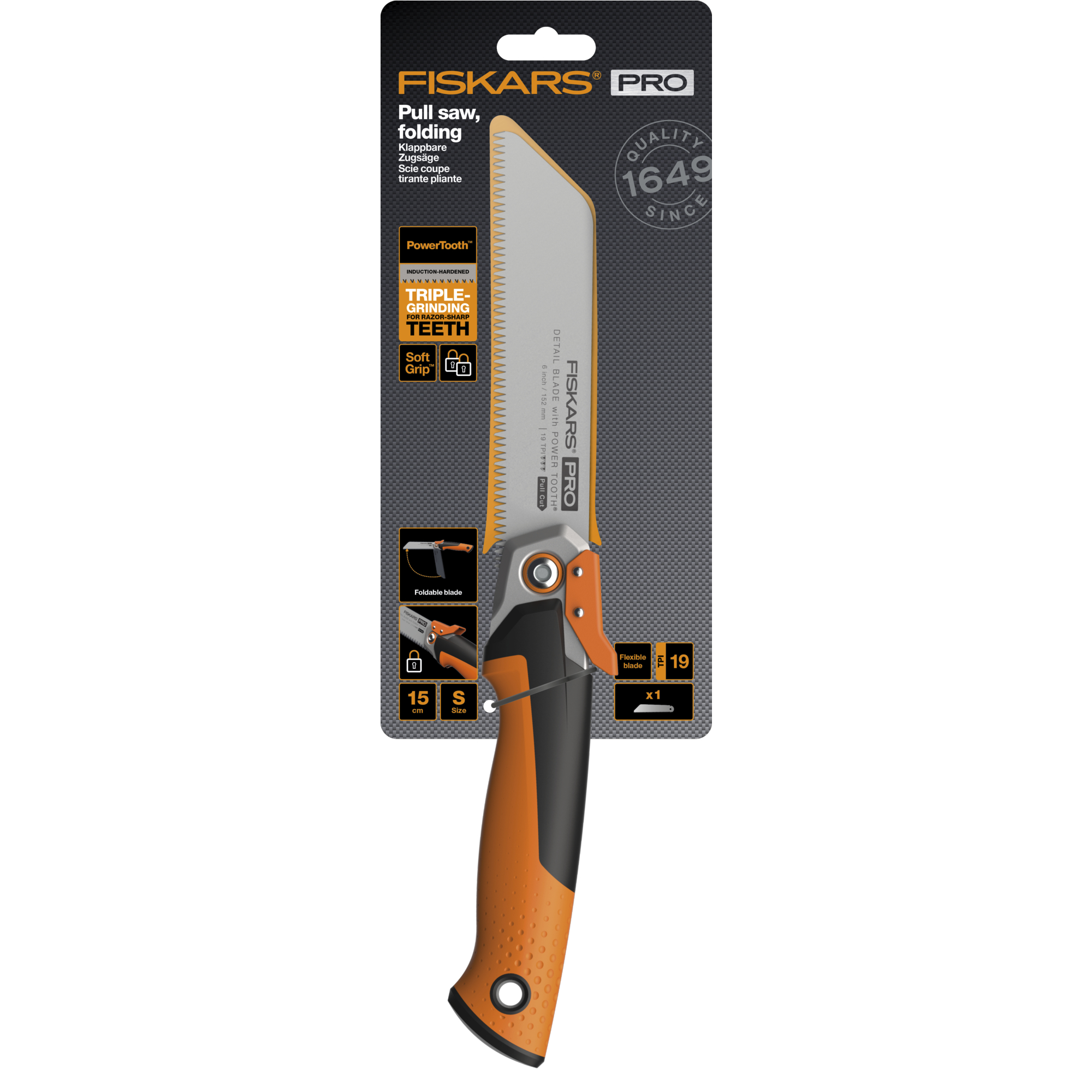 Fiskars PowerTooth kokkupandav saag 150 mm 19tpi pakub professionaalset lõikejõudlust ning on samal ajal turvaline ja mugav kaasas kanda. Saag on kokkuvolditav, kaitstes üliteravaid, peenelt lihvitud hambaid. Turvalukustus hoiab tera kindlalt paigal ega lase sellel kogemata avaneda.